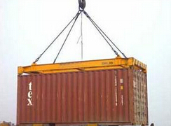B、可分聯(lián)接式吊具,一般適用集裝箱箱型較雜但起吊又不是很頻繁的場合或需同時(shí)兼顧起吊集裝箱和其它普通貨物的場合。該類吊具在制作廠家出廠時(shí)已將吊具和吊索聯(lián)接好,用戶使用時(shí)只需要將吊索上的吊環(huán)掛于起重機(jī)吊鉤上即可。該類吊具的轉(zhuǎn)鎖機(jī)構(gòu)一般采用重錘式或棘輪式,不需額外安裝動力源,安裝使用非常方便。因?yàn)槠鹬貦C(jī)吊鉤一般為無動力可旋轉(zhuǎn)的,導(dǎo)致懸掛于吊鉤上的吊具也會跟著旋轉(zhuǎn),故該類吊具在使用時(shí)需有人員在下面輔助對箱,在堆場上堆箱超過2層時(shí),不適合使用該類吊具。